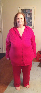 Here is a picture of me tonight, December 6, wearing some red pajamas I got 2 Christmases ago. This is the first time I've been able to get the pants on and button the shirt all the way up. I'm not so thrilled about my stomach, but I can definitely see a difference in my face! Wow!